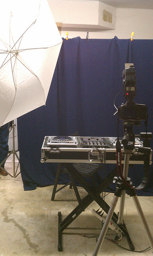 Hey everyone, after receiving a few comments through Facebook and email I thought I'd share how I had the photo at the top of this blog taken. I've been wanting to have some professional shots taken for my business so I brought the subject up with my Father-in-Law Joe Homsy who is an awesome wedding and event photographer. Although he does not have an actual studio, he told me to bring my gear over and he'd figure something out. Well low and behold, I walk into his garage and I see a makeshift studio with his Canon EOS 5D on a tripod and some lighting with a background propped up with some clips.